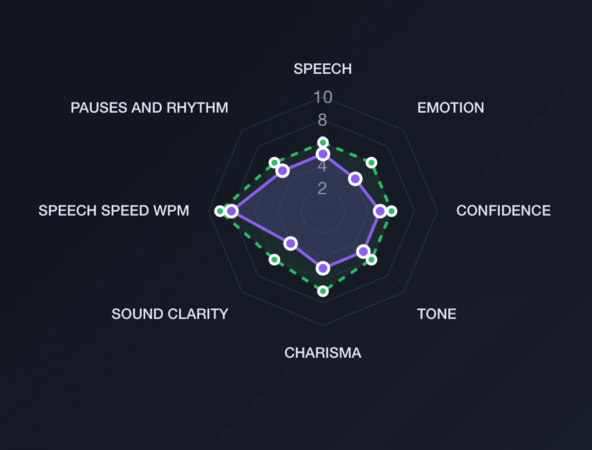 Voice & speech: pacing, clarity, emotional peaks, dead air